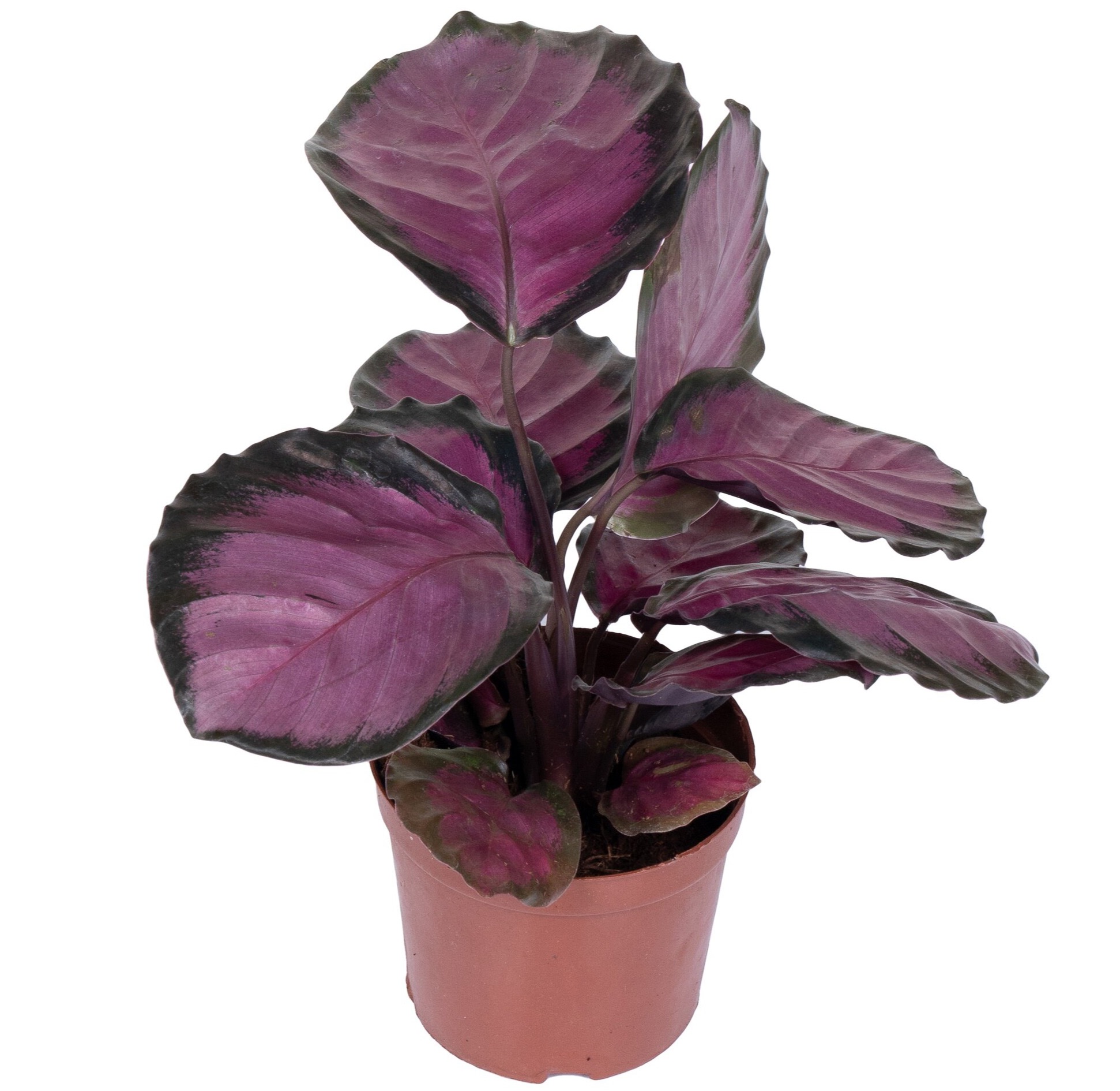 Один из самых ярких сортов калатей. Её листья выглядят как произведение искусства: тёмная основа с ярким розовым центром и бордовой изнанкой создают глубокий и насыщенный визуальный эффект.