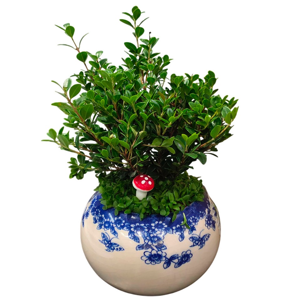 Мирт – классическое декоративное растение с густой кроной и мелкой ароматной листвой. В кашпо он выглядит особенно аккуратно и готов к размещению в интерьере без дополнительной пересадки.